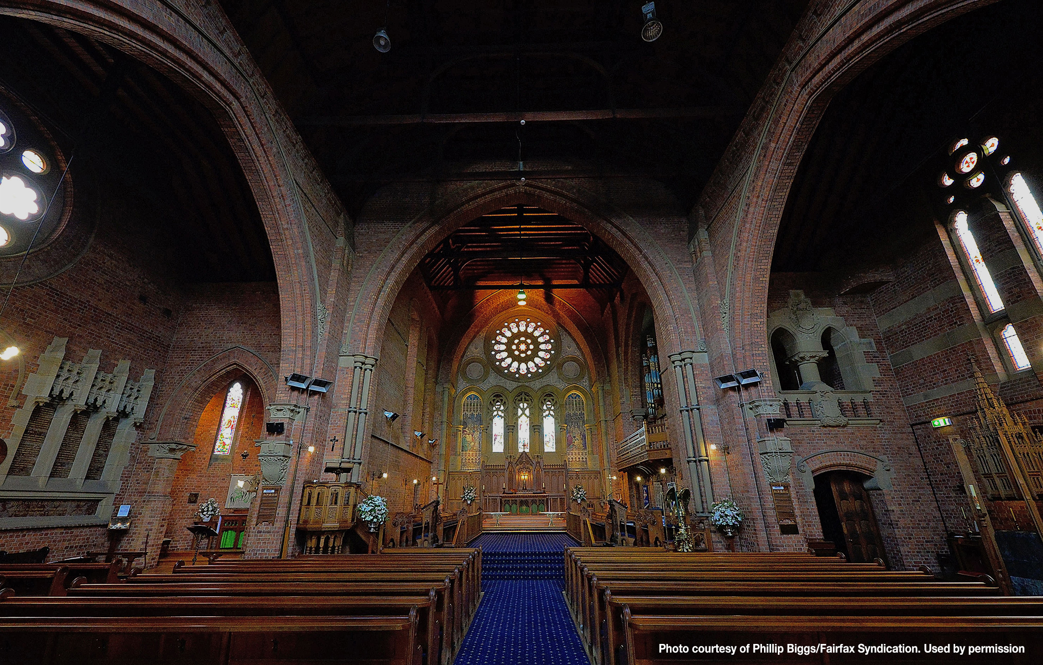 It was towards the end of Hales’ time as Rector that the original church developed structural issues and work commenced on the current building designed by Alexander North. Opened in 1902, the present church was intended to be only stage one, consisting of the chancel, transepts, chapel and vestries. A ‘temporary’ corrugated iron wall (which stayed in place for 80 years!) covered the space where the nave and spire were to join, but these were never constructed. Financial constraints, two World Wars and a Depression all no doubt contributed to the delay, and by the 1980s it was clear that the building as planned would never be completed. The present narthex, office, kitchen and toilets have provided a very functional smaller scale alternative.